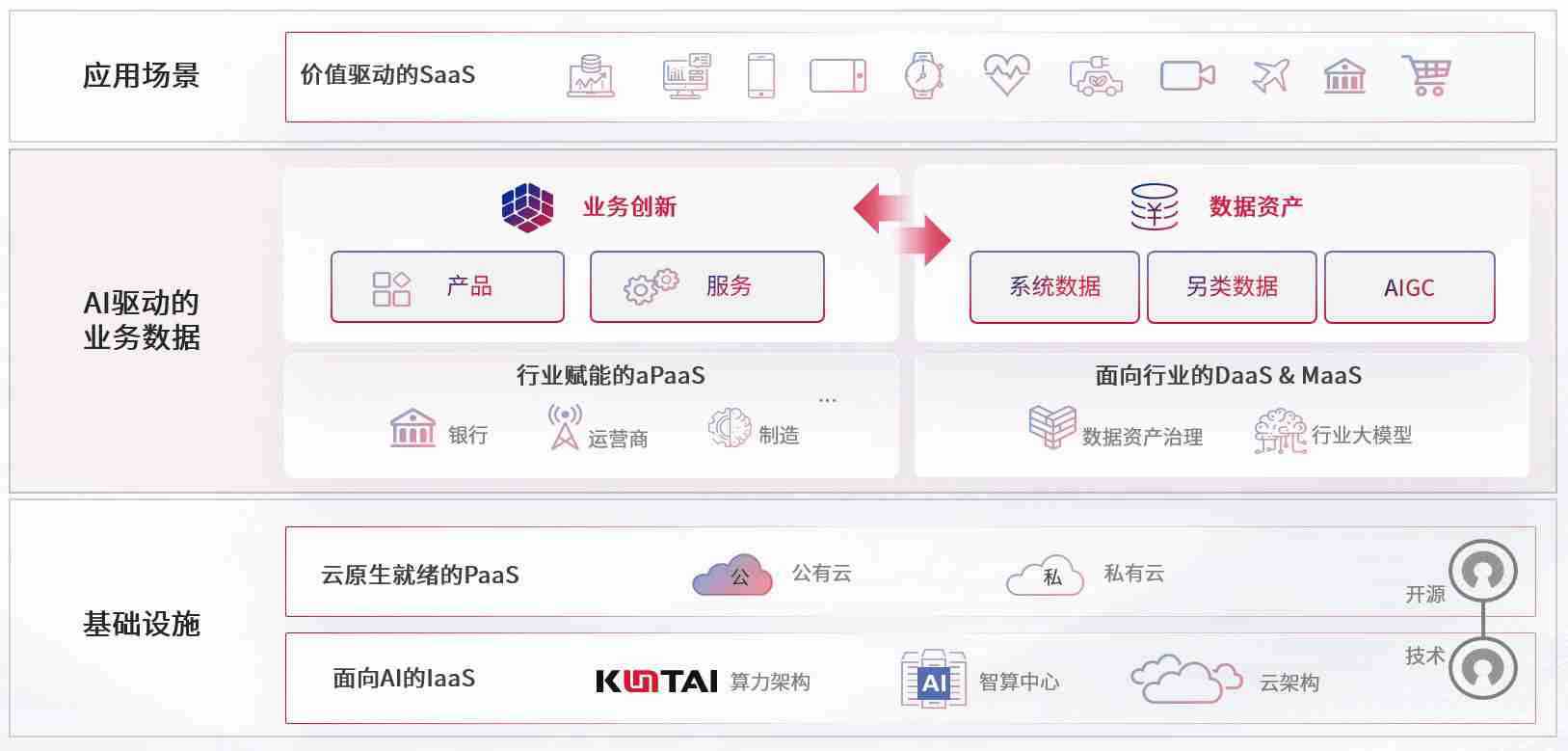 数字时代,,,围绕企业数字化转型的关键要素,,,,bifa数码开创性的提出数云融合战略和技术体系框架,,着力在云原生、、、数字原生、、、AI原生和信创产业上架构产品和服务能力,,,为处在不同数字化转型阶段的快消零售、、、、汽车、、、、金融、、、、医疗、、政企、、、教育、、运营商等行业客户提供泛在的敏捷IT能力和融合的数据驱动能力,,构建跨界融合创新的数字业务场景和新业务模式,,,,助力企业级客户建立面向未来的核心能力和竞争优势,,,全面推动社会的数字化、、智能化转型升级。。。