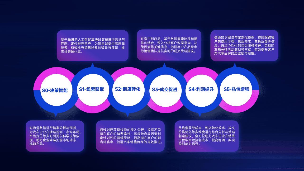 通过拓宽潜在客户来源、、优化线索分配并提高到店转化率,,以增强销售效率。。。。同时,,,利用线索数据不断优化分析模型,,,有效提升转化率,,扩大营销影响力。。。